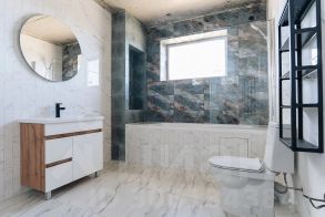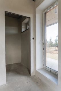 Выполнена предчистовая отделка: стены выровнены под покраску (стеклохолст+шпатлевка), установлены подоконники, сделаны откосы, разведены электрические провода и трубы.