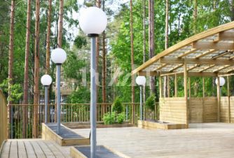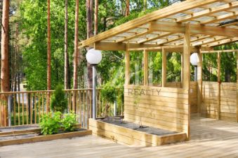 Участок 8,5 соток на котором возведен дом, расположен на возвышенности, с террасы вам открывается прекрасный вид на сосновый лес. Участок приватный, находится на границе коттеджного поселка, что визуально расширяет его площадь и минимизирует количество соседей.