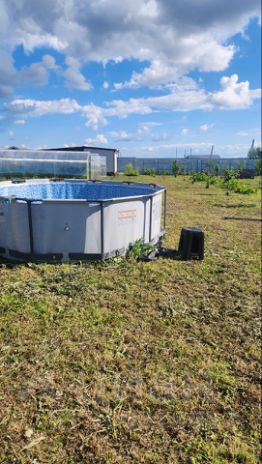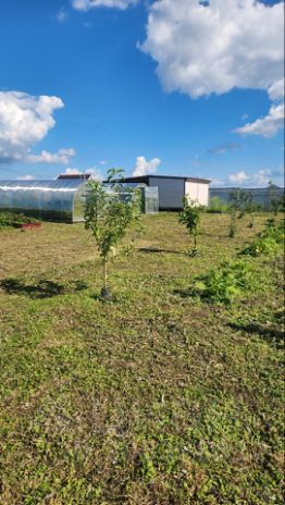 На участке имеется летний домик 6х6 (2,5 х 6 из которых веранда). Веранда по контуру закрыта гибким стеклом .Домик каркассный,утепленный. Внутри инфракрасные ( не энергоемкие) подвесные к потолку обогреватели.