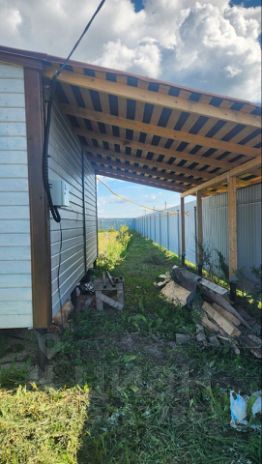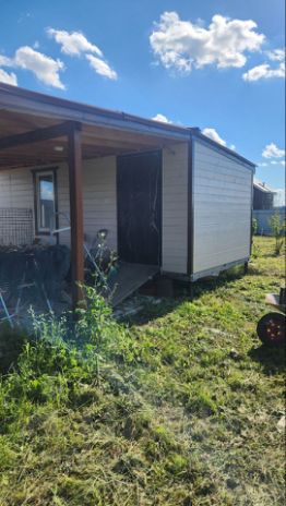 Так же на участке бытовка 3х6 с навесом 4 х 6 м ,участок под навесом выложен плиткой. Проведено освещение. Бытовка и площадка у бытовки оборудованы под мастрескую,