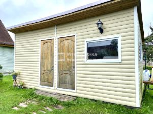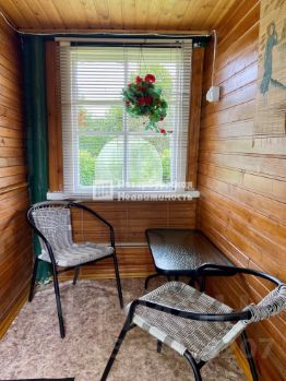 Дом на бутовом ленточном фундаменте из бревна, обшит сайдингом, кровля- ондулин. Имеется подвал. Площадь первого этажа 80 м.кв., три комнаты в мансардном этаже.