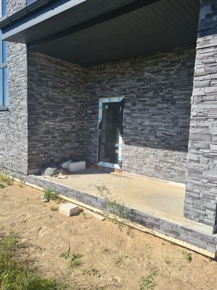 В планировке дома предусмотрено: 4 спальные комнаты, гардеробная, помещение котельной, 2 ванные комнаты, удобная прихожая с лестницей на второй этаж и большим панорамным окном на лестничной площадке. Из гостиной предусмотрен выход на террасу.В доме установлен газовый настенный котел и подключен теплый пол на первом этаже.Выполнена отмостка дома и бетонный въезд на участок.