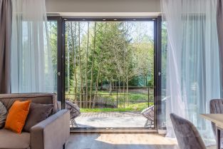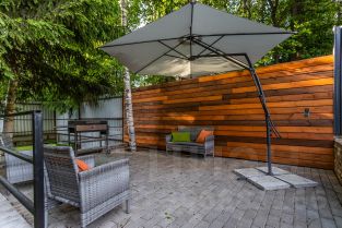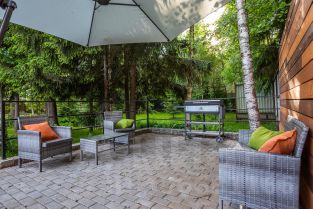 Угловой участок правильной формы, площадью 10 соток (фактически почти 12), огорожен забором, оснащен двумя автоматическими воротами. Зонирован, на одной части великолепие природы, нетронутый лесной массив и небольшой пруд; на другой ровный, мягкий газон, зона отдыха с барбекю, большая парковка на 4 машины и дорожки, вымощенные брусчаткой.