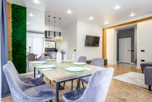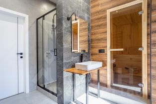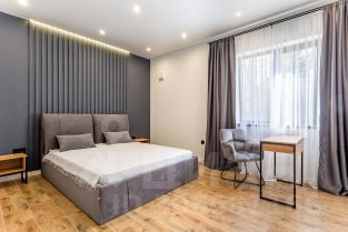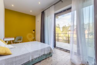 В доме 2 этажа, 5 спален (в том числе мастер-спальня), 3 санузла, сауна, хоз. комната и техпомещение и 2 больших балкона.