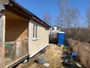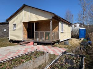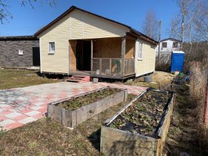 Продам дачу. Дом каркасный утепление 100 мм, Снаружи сайдинг, внутри вагонка. Электричество проведено и в дом и в баню. Договор с Ленэнерго. В доме 2 спальни 33 и кухня 63. Печь стоит на кухне. Дом на сваях. Закрытый теплый коридор размером примерно 22. И открытая веранда. Всё это под единой крышей с домом. Каркасная баня 63. Внутри вагонка, снаружи Технониколь. В бане проведена вода, проведено электричество. Нужно доделать -это перегородки и поставить печь. Баня стоит на бетонных блоках. Половина участка поднята, площадка перед входом в дом 65 уложена плиткой. На участке 2 вида воды. Первая вода-это техническая ( абесинская скважина) моем посуду, поливаем огород итд. Вторая вода питьевая , сезонная где-то с мая по октябрь/ноябрь. Питьевая вода проведена в дом и в баню. Участок огорожен сеткой-рабицей. справа нет соседей, можно расшириться, если будет такое желание. Сделаны ворота и калитка. Заезд. Туалет уличный био.Всё строилось для себя, долгов нет. Из мебели остаётся холодильник, кухонная гарнитура и диван на кухне. Продаем в связи с отъездом. Оформлен только участок! Дом не оформлен!