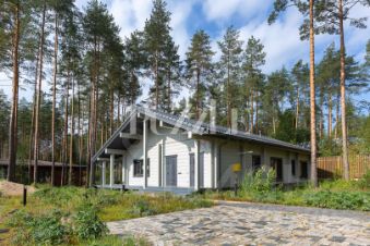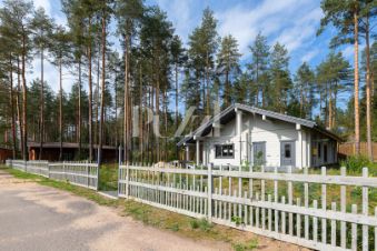 Арт. 123857661 Продается современное домовладение площадью 185 кв.м. на 15 сотках в окружении сосен в Рощино, что позволяет с учетом новой трассы Скандинавии добираться до центра за 45 минут. Дом построен из клееного бруса 165х165 мм в один этаж и имеет 3 спальни, 2 сан.узла, просторную кухню- гостиную с камином и панорамными окнами. Для отделки использовались дорогие материалы: на полах паркетная доска и керамогранит. Установлен кассетный камин. Вдоль всего дома проходит терраса из лиственницы.