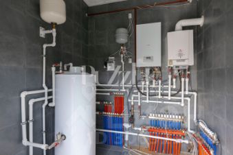 Коммуникации в коттеджном поселке: центральное газоснабжение, центральное водоснабжение, электричество 15кВт. Локальная канализация установлена на участке. Отопление дома от газового котла.