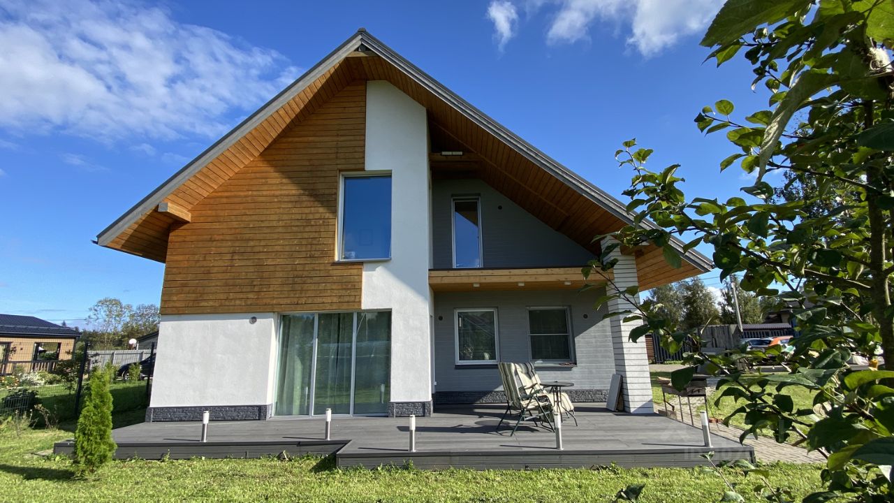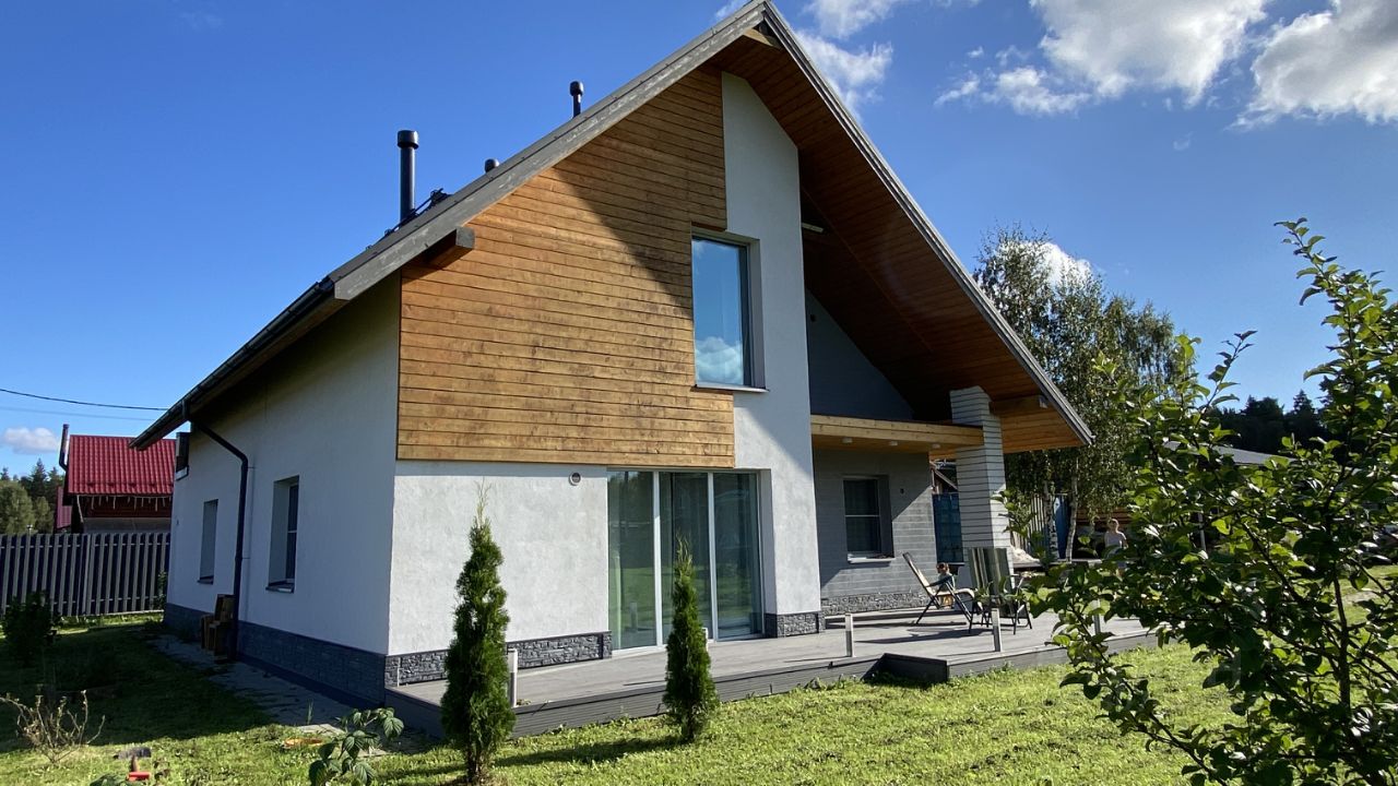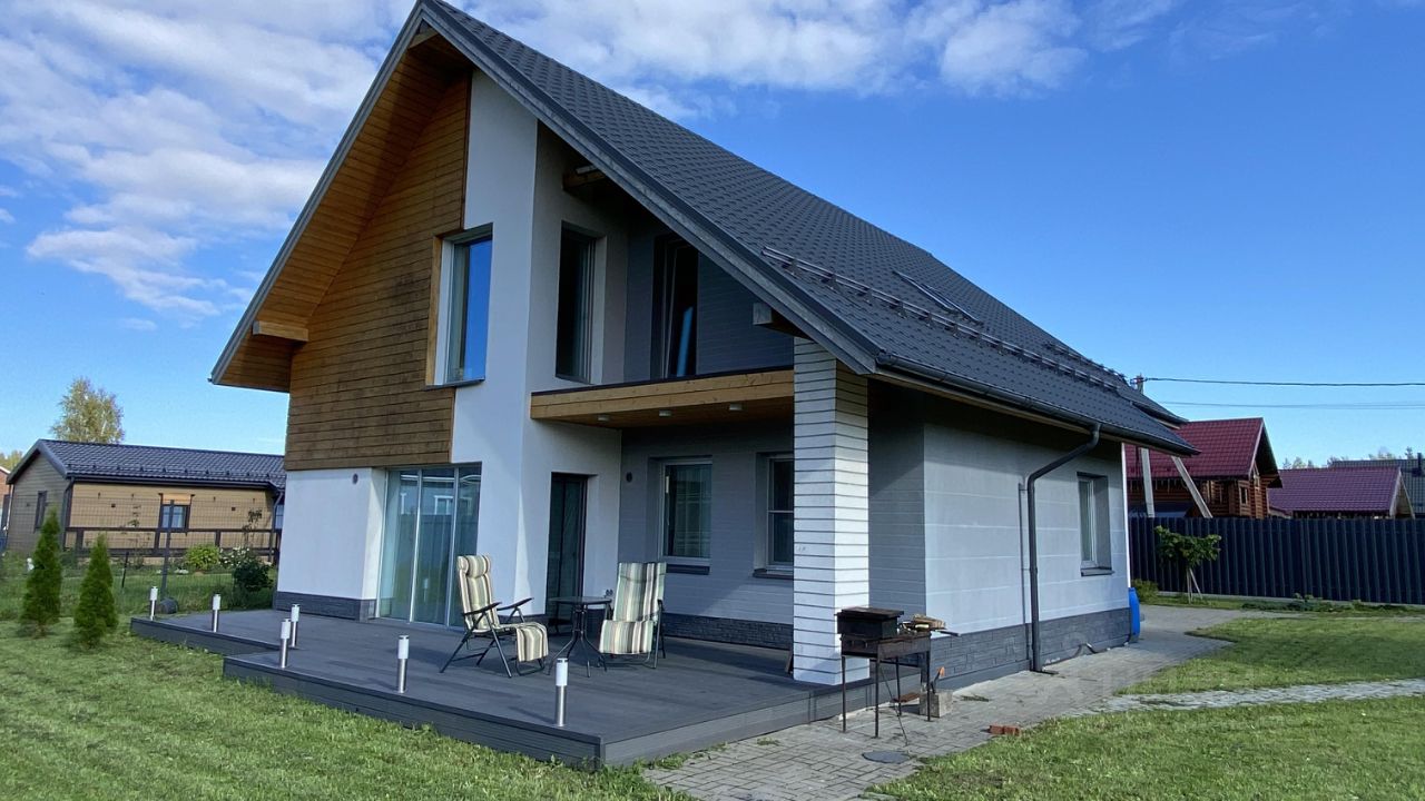 Жилой дом состоит из двух полноценных этажей, построен на монолитной фундаментной плите из газобетона с утеплением и внешней штукатуркой, построен с учетом современных стандартов и предлагаемых удобств. Просторные комнаты, элегантный интерьер и функциональная планировка создают идеальные условия для жизни. Такой дом подходит для семейной жизни или активного отдыха на природе. Просторная гостиная с камином станет уютным местом для встреч с близкими, а кухня с помещением для хранения обеспечит комфорт в повседневных делах. Гостевая спальня на первом этаже позволяет принимать гостей без необходимости подниматься на второй уровень. Большая терраса под крышей создаёт комфортное пространство для времяпрепровождения на свежем воздухе в любую погоду. Так же на первом этаже расположен санузел и техническое помещение.
