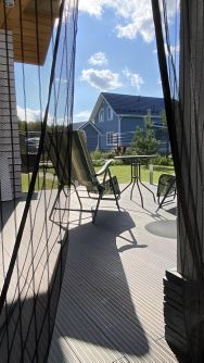 Дом подключен ко всем необходимым коммуникациям: электрический котёл с дистанционным управлением, приточно-вытяжная вентиляция, электричество 15 кВт, водоснабжение из колодца с фильтрацией и автономная канализация.