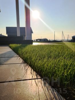 Дом находится на участке площадью 10,17 соток, правильной формы, сухой и полностью разработан. Газон плотный, можно ходить босиком и кувыркаться.