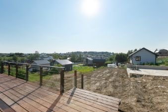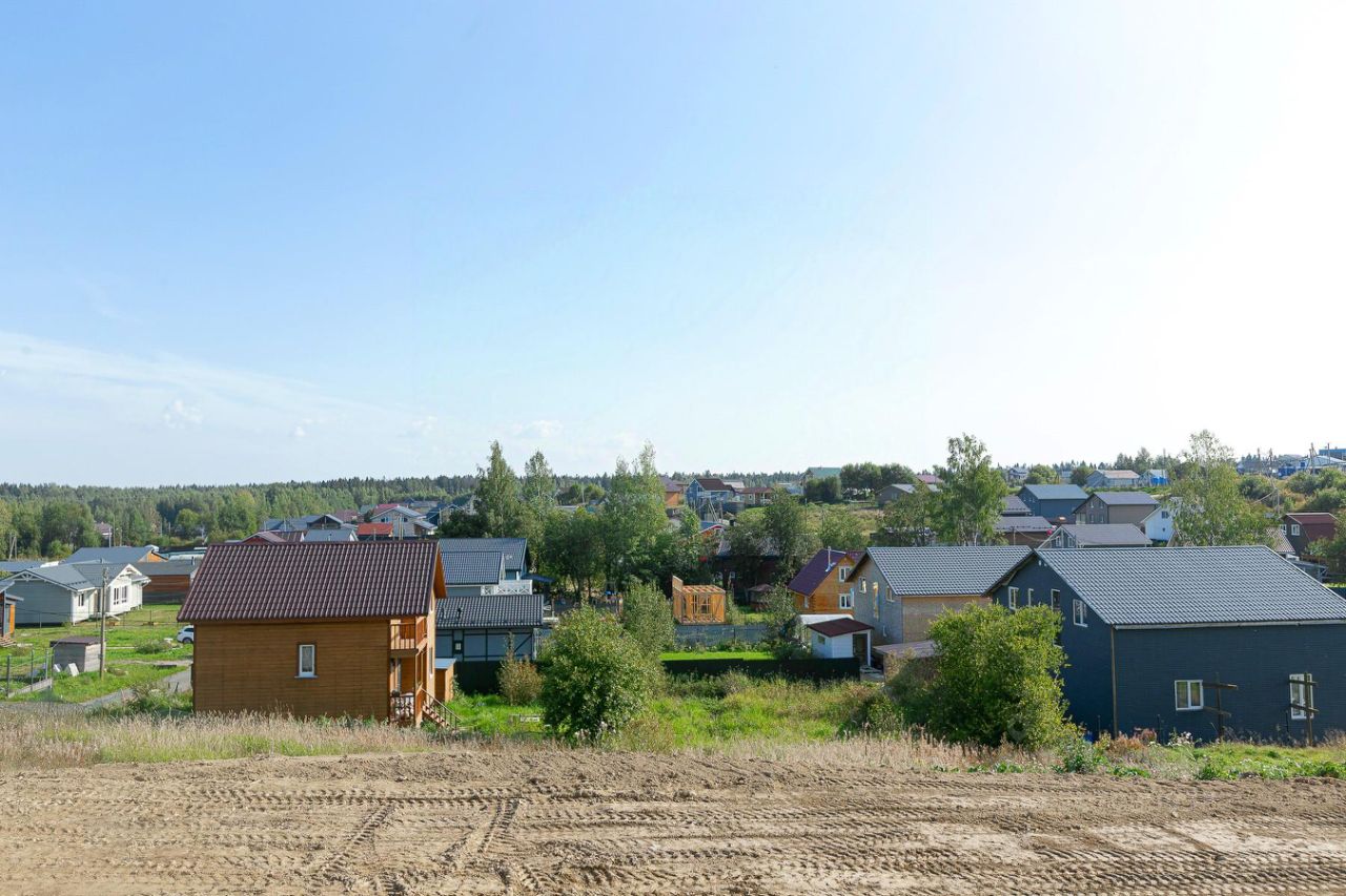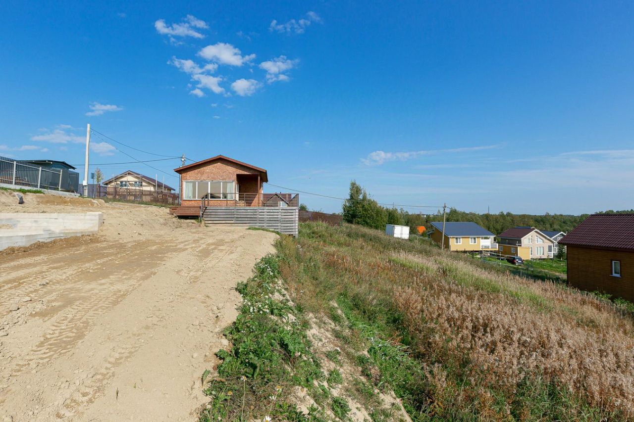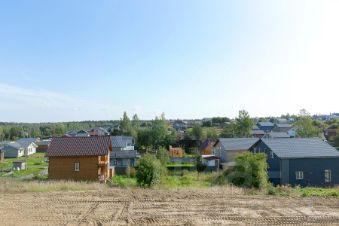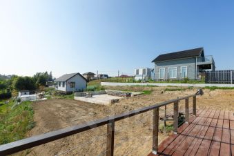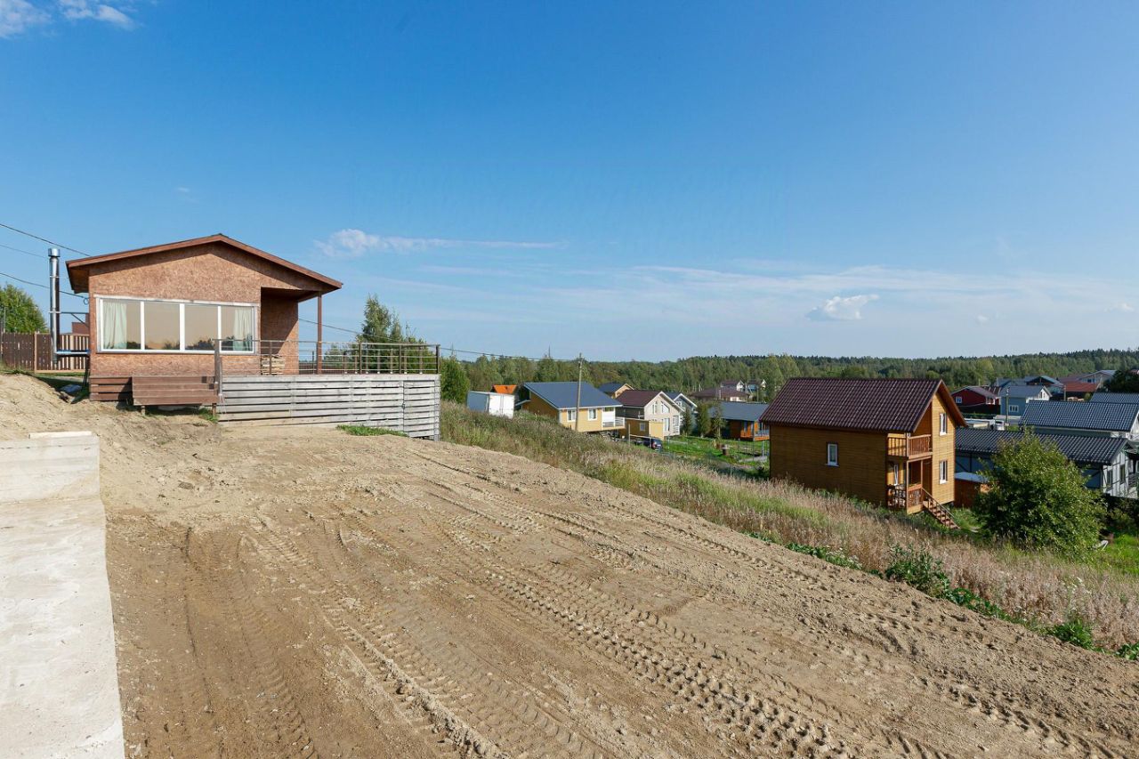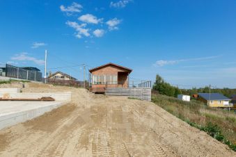 Участок аккуратно отсыпан и выровнен, разделен на два уровня: первый оборудован заездом и готовым фундаментом размером 10x7 м, второй уровень ждет вашего творческого замысла.
