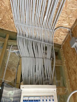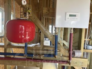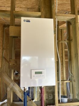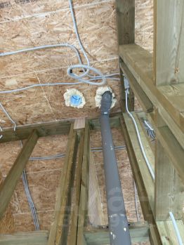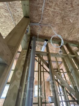 Внутри - проведены коммуникации: электро разводка, канализация, сантехнические коммуникации, теплый пол, разводка пола и сантехники, котельная, электро котел на теплый пол, выводы вентиляции