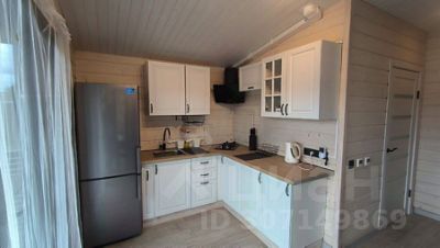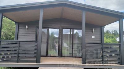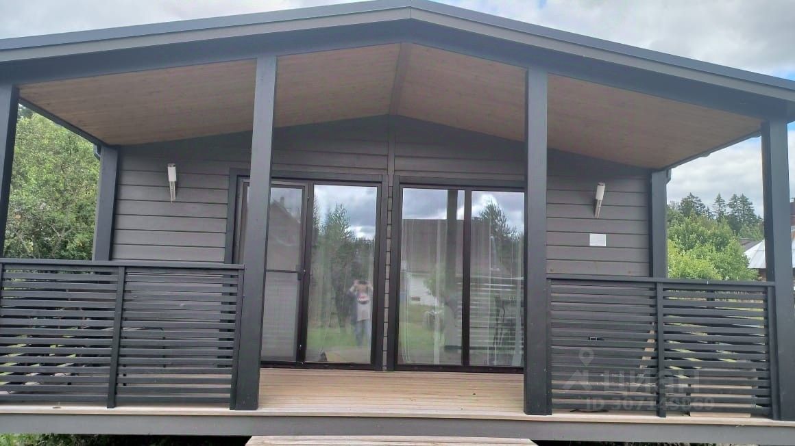 Общая площадь с террасой 43 кв.м. ; Стены - имитация бруса Карельский профиль , сосна; каркас - из металла; терраса лиственница; полы ламинат , теплый инфракрасный пол; потолок имитация бруса сосна; фундамент свайно-винтовой.