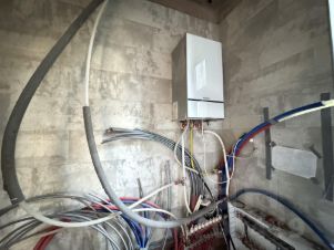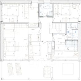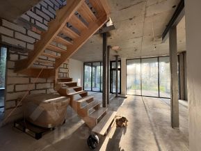 Дом выполнен из газобетона, стоит на монолитной плите, крыша из лвл бруса, покрыта цементно-песчаной черепицей. На 1 этаже располагается кухня-гостиная площадью 90,6м2, спальня 15,4м2, а также кладовая, гардеробная, котельная и санузел, при этом открытая планировка позволяет организовать вторую спальню при необходимости. На втором этаже 3 спальни (33, 23 и 15м2), в каждой спальне есть мансардный этаж, на котором может быть организован кабинет или игровая зона, также предусмотрено большое помещение площадью 22м2 под организацию спа-зоны с своим выходом на террасу. На участке свой септик и газгольдер, установлен котел и проложены теплые полы. Электричество трехфазное 15+16 кВт. Водоснабжение из локальной скважины поселка.
