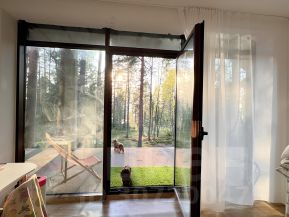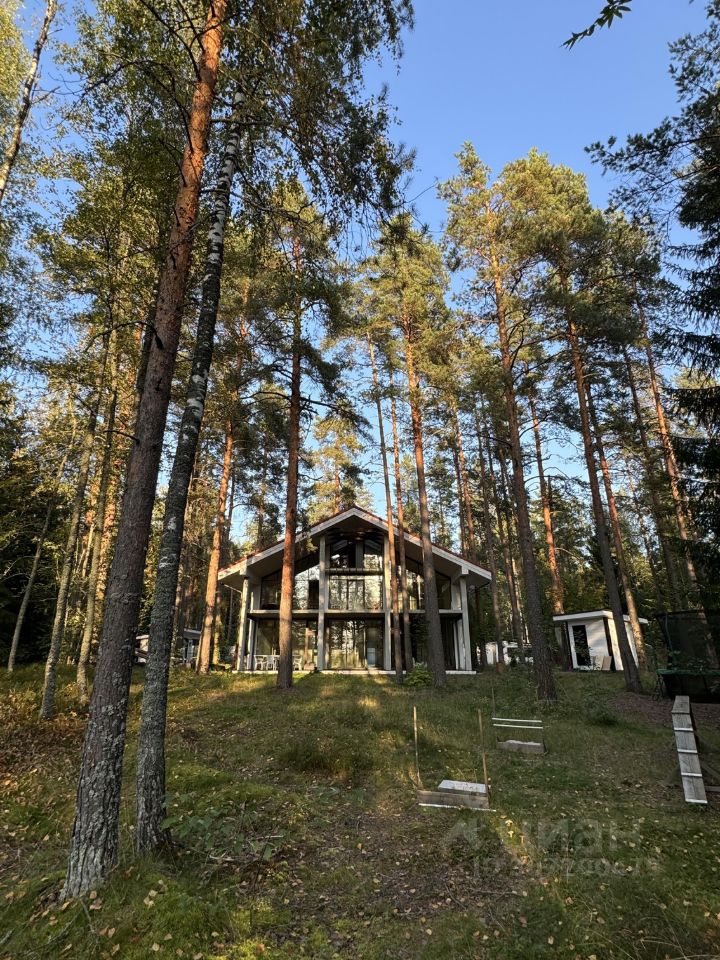 Продается трехэтажный дом в уникальном месте Ленинградской области, прямо у Большого Симагинского озера (Красавица), от дома до большого пляжа в экопарке Вереск всего 3-5 минут пешком. До Зеленогорска 7-8 минут на автомобиле. Также в пяти минутах езды трасса Скандинавия. Дом стоит высоко над озером на ровном и сухом участке в сосновом лесу в небольшом и уютном коттеджном поселке, примыкающем к экологическому парку Вереск и Лесная рапсодия с чудесными пляжами, тропами, велодорожками, детскими площадками и ресторанами. Дом ориентирован на озеро, на каждом этаже располагаются огромные крытые террасы площадью 50м2 каждая, с которых открывается великолепный вид на лес и озеро. Площадь каждого этажа около 130м2 без учета террас, площадь третьего мансардного этажа около 30м2. Дом очень светлый, весь фасад дома выполнен из стекла, окна во всех помещениях включая санузлы от пола до потолка, в крыше много мансардных окон.