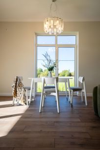 -большая кухня- гостиная с панорамными окнами в пол