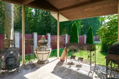 Один из коттеджей полностью готов к проживанию, с ремонтом, с дорогой мебелью на заказ и техникой.