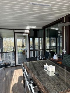 1-й этаж: большая кухня-гостиная с панорамным остеклением, кабинет (спальня), прихожая, гардеробная, санузел и большая терраса (часть террасы застеклена!);