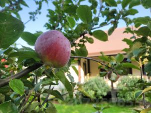 Участок с идеальным газоном, плодовыми деревьями (яблони, груши и сливы), малиной и клубникой.