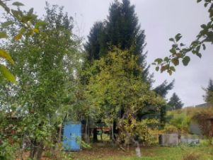 Участок ровный, сухой, дренажный ров по двум сторонам. Растут яблони, красная и чёрная смородина, вокруг большие многолетние ели.