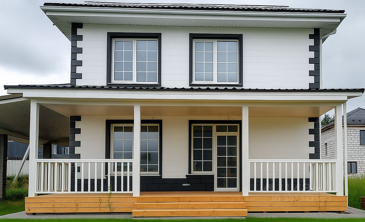 Продается новый современный двухэтажный дом в классическом стиле 2023 года постройки общей строительной площадью 177 кв.м. включая большую террасу и навес на 2 автомобиля (!!! Не подходит под семейную ипотеку).