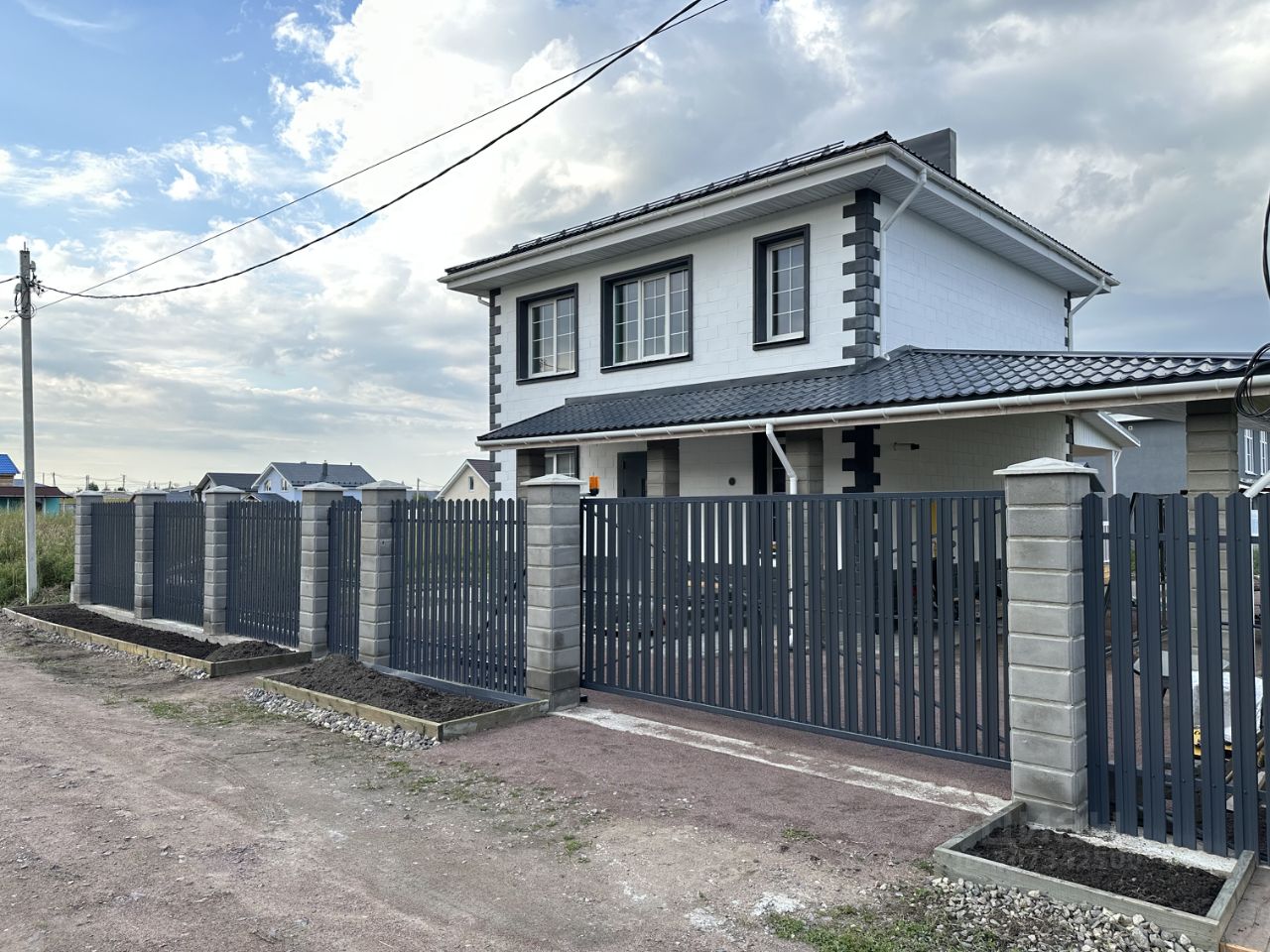 - со стороны входной группы смонтирован забор из евроштакетника с калиткой и автоматическими откатными воротами