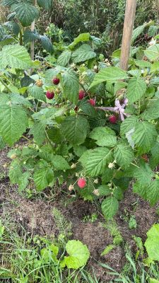 Имеются плодовые деревья: яблони, груша, слива - 4-5 лет. Так же малиновые кустарники.