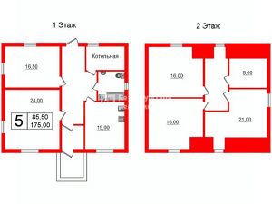 На первом этаже расположена кухня-столовая, две комнаты, санузел, болерная.