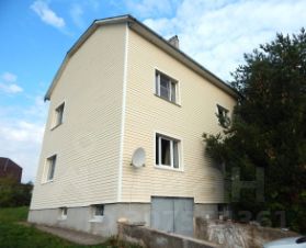 В цоколе расположен теплый гараж, сауна с унитазом, душем и ванной-джакузи, 2 стиральные машины, кладовая 8.9 кв.м., холодный погреб под балконом, потолки 2,5 м