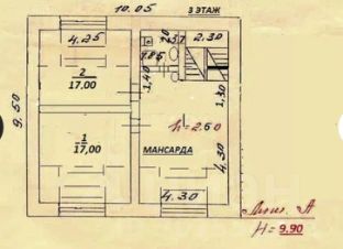 3 этаж (мансардный), три комнаты, 2/3 всех 3-х комнат с потолком 260 см