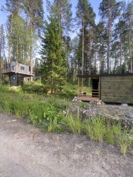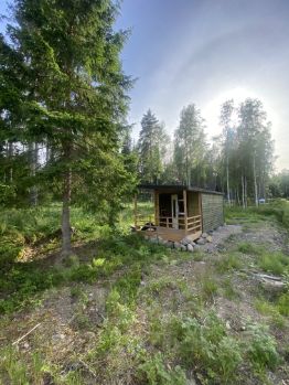 На участке построен маленький летний домик без утепления и отдельный уличный туалет.
