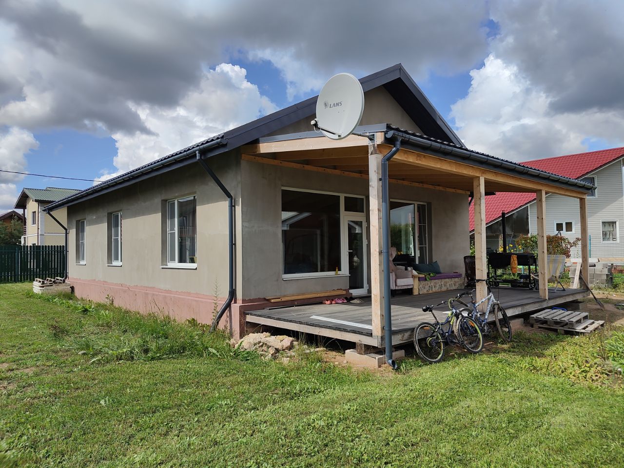 На доме и гостевом доме собственные спутниковые тарелки.