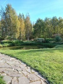 Участок благоустроен, есть собственный пруд и возможность домашней рыбалки.