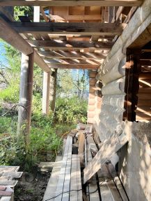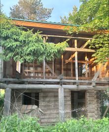 Есть зимний дом 1985 года ( отопление печное, вода питьевая проведена в дом, ванная, водогрей, стиральная, посудомоечная машины)и гостевой дом недострой из бревна ручной рубки первый этаж и каркас второй этаж , стоит на плите, трубы канализации разведены в бетоне. Вода колодец.