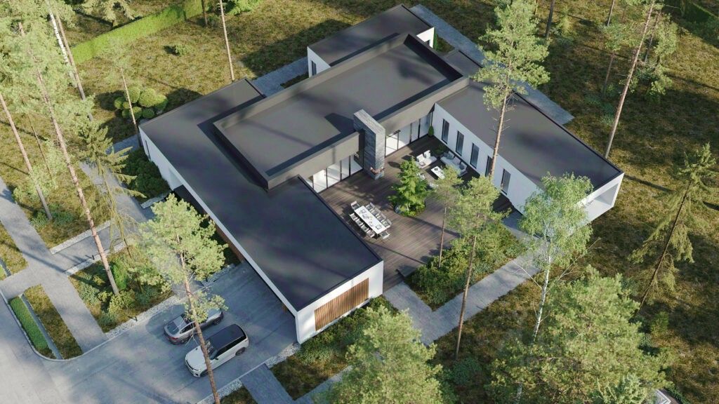 Жилая часть это прежде всего простор и комфорт (кухня-столовая-гостиная 115,1 м2, кабинет (гостевая), а также спа-зона), а в спальной части вы найдете просторную мастер-спальню с гардеробной и ванной, две спальни с отдельным санузлом и ванной, а также великолепный вид из окон на сад и сосновый лес.