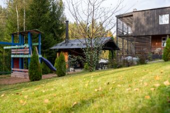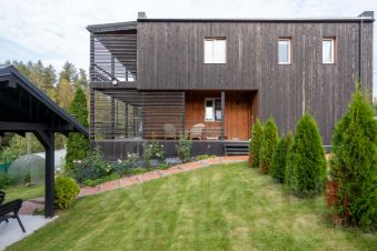 Жилой дом 214 кв.м. построен по каркасной технологии в 2 этажа, имеет продуманную функциональную планировку: 1й этаж кухня-гостиная 38 кв.м, санузел/сауна, гардеробная, подсобное помещение, просторная терраса 30 кв; 2й этаж - 4 спальни, санузел, гардеробная, терраса. Фундамент - ж/б сваи, плоская кровля из пвх мембраны. Коммуникации: электричество 15кВт, питьевая вода из артезианской скважины 206 метров, автономная станция биологической очистки, отопление электрич.котел, теплые полы и радиаторы.
