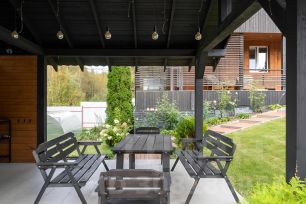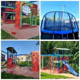 Участок максимально благоустроен для создания комфортной жизни на природе, имеется детская площадка, большая парковка, беседка, гриль-зона, выполнено озеленение (высажены плодовые деревья и кустарники, цветочные клумбы), обустроены тротуары, газон.