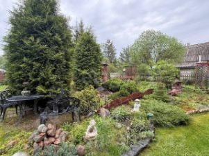 Растут яблони,сливы, крыжовник, черная и красная сморода.