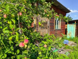 Во дворе есть деревья (яблоня и вишня), а так же калина и облепиха.