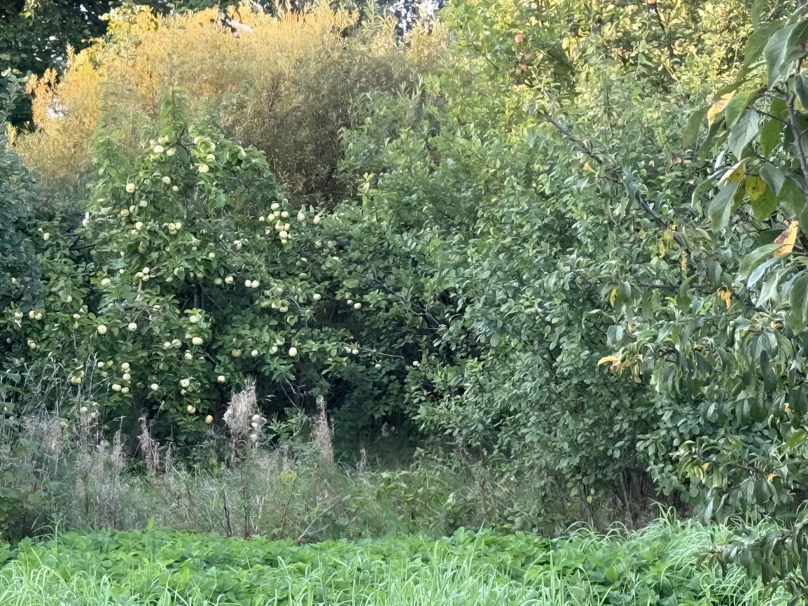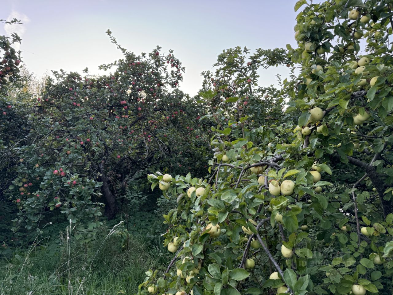 На участке отсутствуют строения, много плодовых деревьев, скважина для воды.