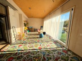 Пристроена теплая терраса с порталом в 5 метров ( выход на будущую открытую террасу ).