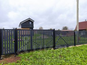 • Вдоль границы с улицей установлен забор из штакетника, организован въезд через откатные ворота, отдельно калитка с замком. Видеонаблюдение дома и земельного участка.