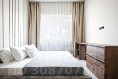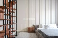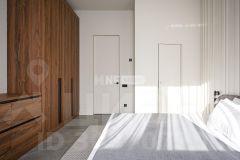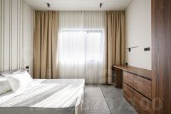 Вторая спальня в светлых тонах с рабочим местом, отдельной гардеробной и отдельным санузлом с душевой.