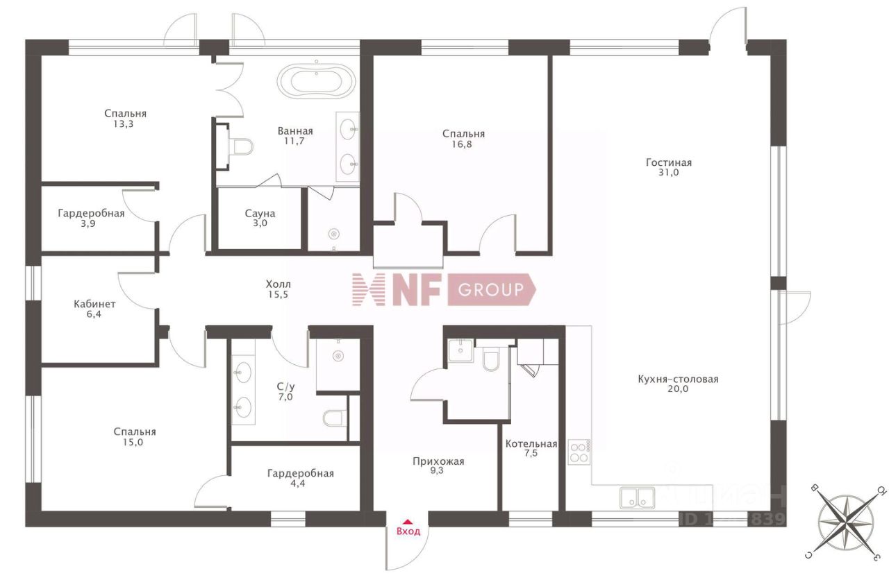 Третья спальня с рабочим местом и просторным гардеробным шкафом. Четвертая комната кабинет с рабочим местом, с возможной комбинацией перехода в детскую комнату. Дополнительный гостевой санузел на этаже.