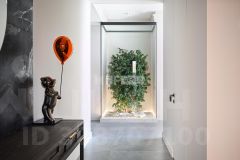 Живой природный оазис в центре дома, символично подтверждает монументальность и благородство дома, которое проявляется в цветовой гамме и балансе природных фактур стекла, камня и дерева.