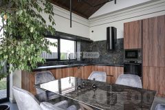 Шикарная гостиная с высокими потолками, остеклением в пол и видом на зелень внутреннего двора с крытой террасой и зоной отдыха с качелью и столиком для ужинов на свежем воздухе. Эргономичная Кухня-столовая, наполнена техникой линейки Kuppersberg для приготовления кулинарных шедевров.