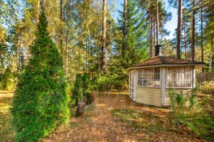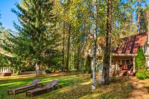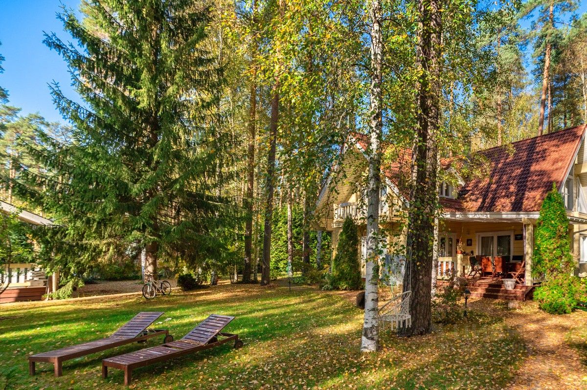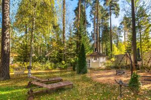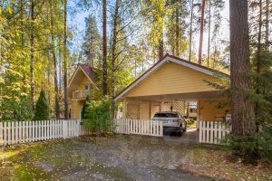 На участке сохранены все деревья:  ели, сосны, березы, выполнен ланджафтный дизайн , сделан дренаж и освещение. Дополнительные постройки: баня-гостевой дом,  навес для 2 машин с хозблоком, финская  гриль- беседка.