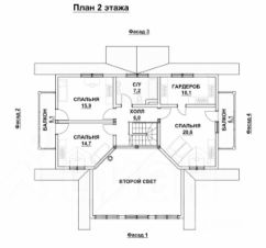 Второй этаж:  три спальни (одна с балконом и гардеробной) и ванная с туалетом.