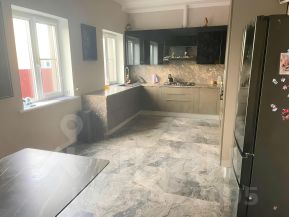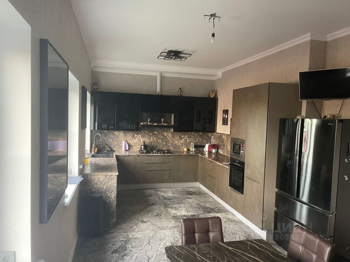 На Кухне современная мебель с встраиваемой техникой: микроволновка, духовой шкаф , газовая варочная панель (баллон), вместительная посудомойка 600мм , вытяжка. Столовая группа включает в себя 6 кресел и большой стол.