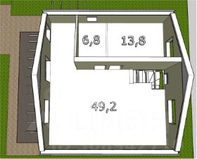 * Первый этаж: прихожая, санузел, комната и большая гостиная.